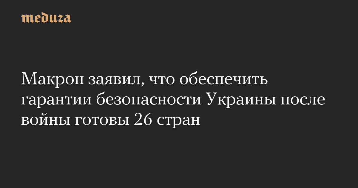 «Сегодня 26 стран формально согласились направить контингент в Украину или предоставить определенные средства для поддержки этой коалиции для обеспечения безопасности на море или в небе», — сказал Макрон. По его словам, гарантии безопасности со стороны США будут согласованы в ближайшие дни.