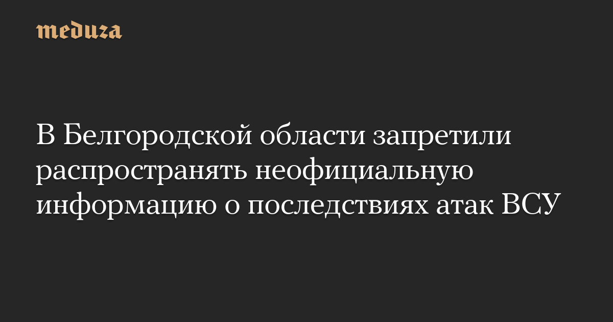 В Белгородской области запретили распространять неофициальную информацию о последствиях атак ВСУ