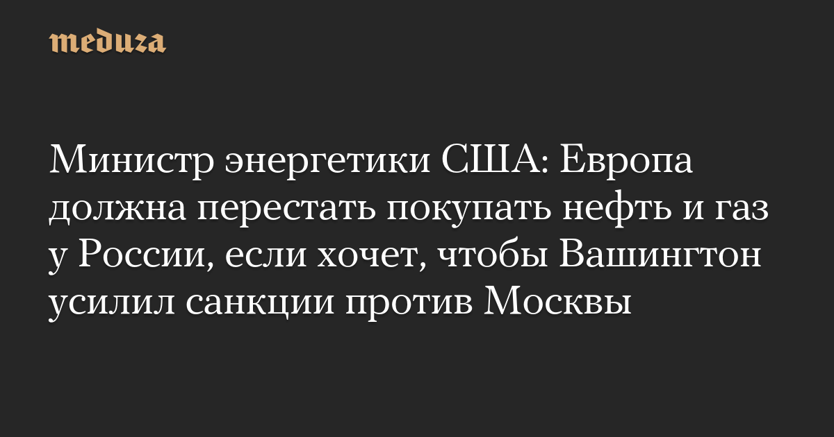 Министр энергетики США: Европа должна перестать покупать нефть и газ у России, если хочет, чтобы Вашингтон усилил санкции против Москвы