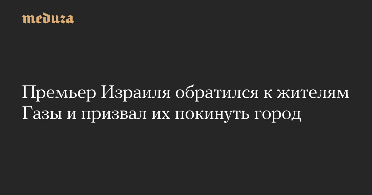 Премьер Израиля обратился к жителям Газы и призвал их покинуть город