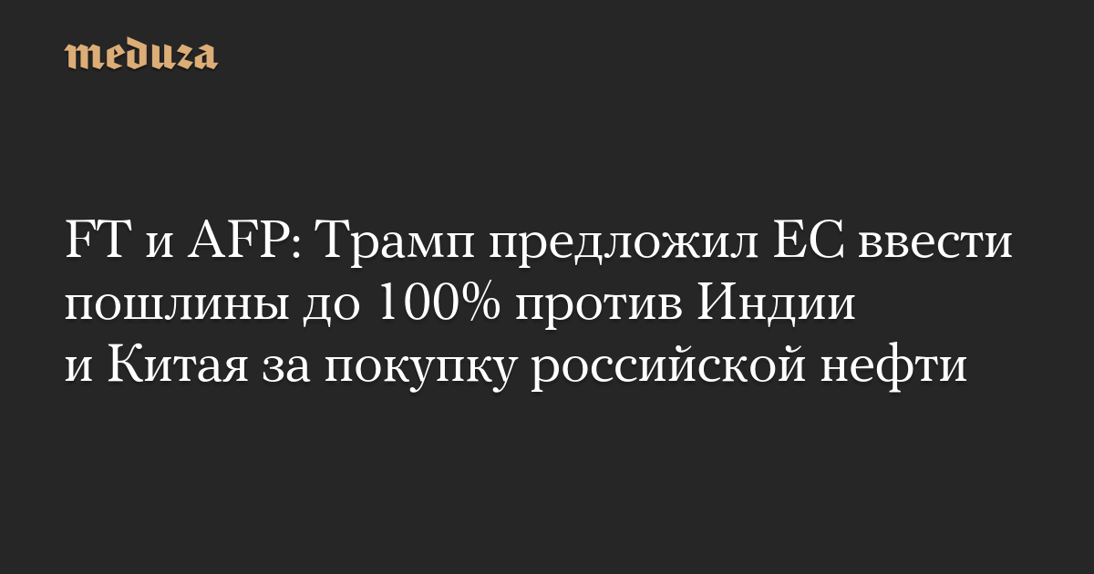 FT и AFP: Трамп предложил ЕС ввести пошлины до 100% против Индии и Китая за покупку российской нефти