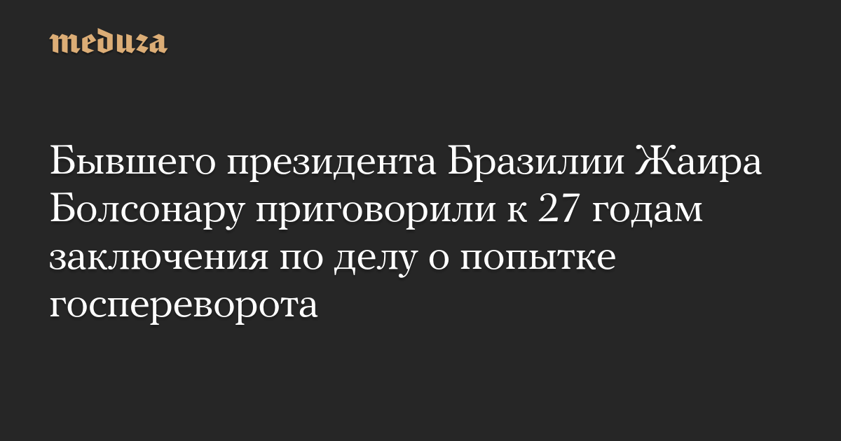Бывшего президента Бразилии Жаира Болсонару приговорили к 27 годам заключения по делу о попытке госпереворота