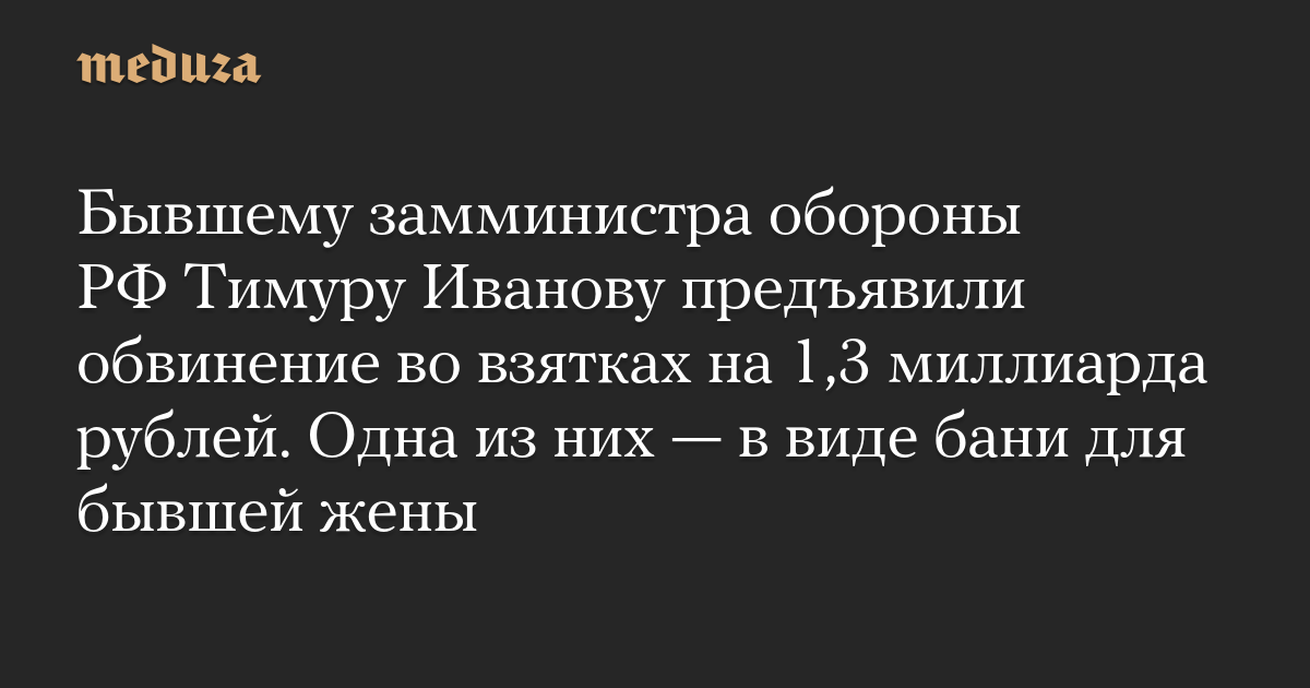 Бывшему замминистра обороны РФ Тимуру Иванову предъявили обвинение во взятках на 1,3 миллиарда рублей. Одна из них — в виде бани для бывшей жены