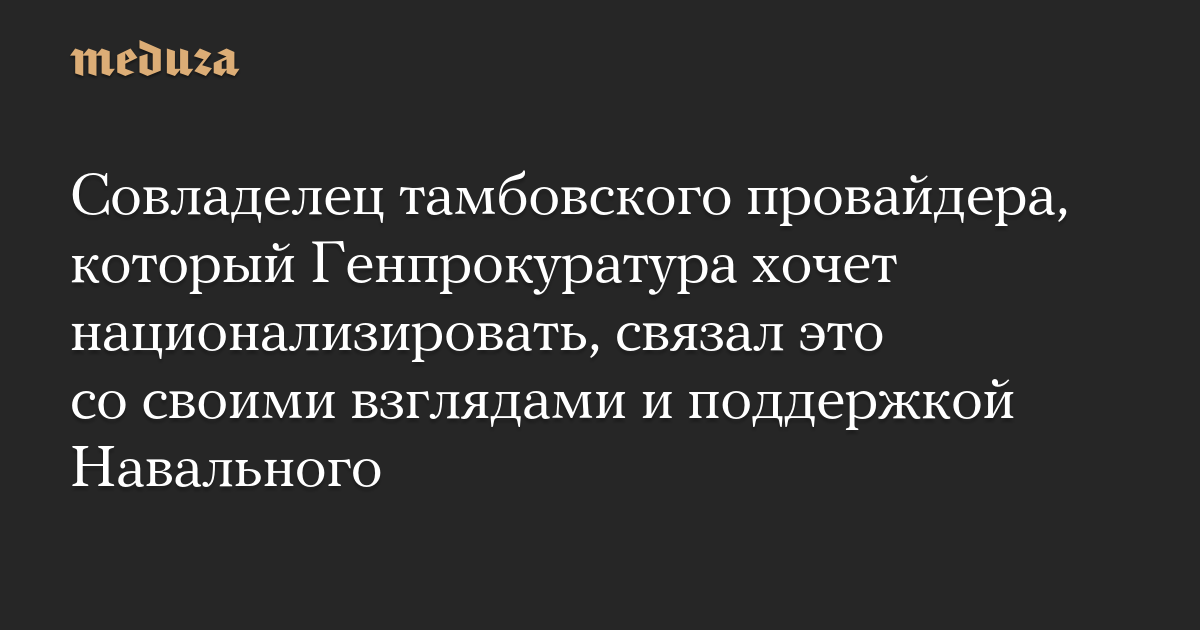 Совладелец тамбовского провайдера, который Генпрокуратура хочет национализировать, связал это со своими взглядами и поддержкой Навального