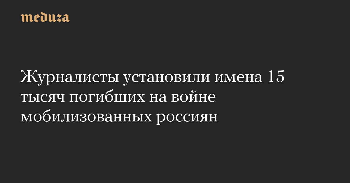 С начала вторжения России в Украину на войне погибли 15 077 мобилизованных россиян, установили журналисты «Медиазоны» и «Русской службы Би-би-си», которые ведут подсчеты на основе данных из открытых источников.