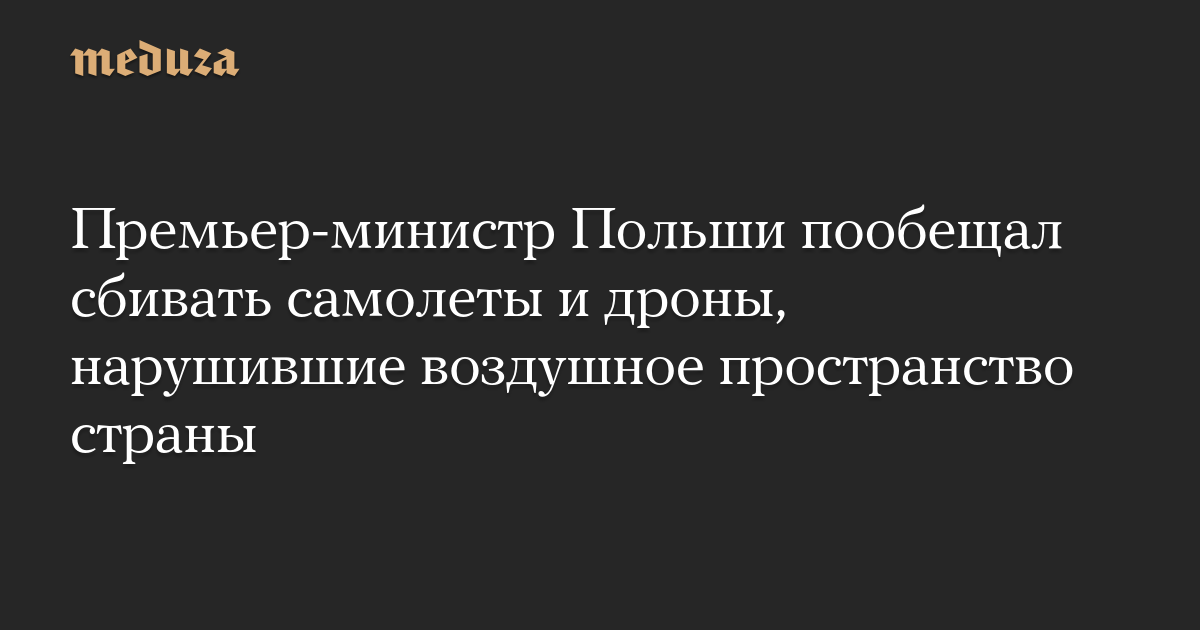 Премьер-министр Польши пообещал сбивать самолеты и дроны, нарушившие воздушное пространство страны