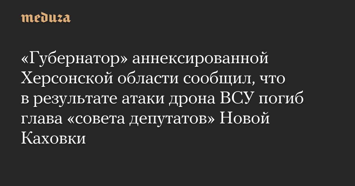 «Губернатор» аннексированной Херсонской области сообщил, что в результате атаки дрона ВСУ погиб глава «совета депутатов» Новой Каховки