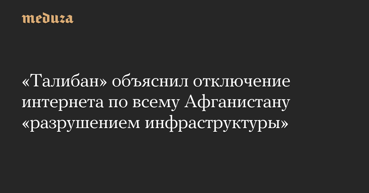 Правящее в Афганистане движение «Талибан» объявило, что отключение интернета в стране связано с «разрушением оптоволоконной инфраструктуры». Заявление было опубликовано в групповом чате в WhatsApp, в котором есть пакистанские журналисты, передает Associated Press.