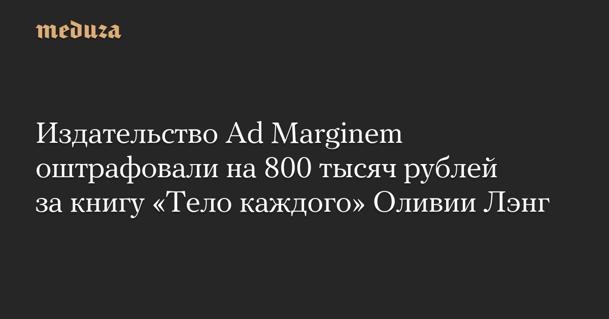 Издательство Ad Marginem оштрафовали на 800 тысяч рублей за книгу «Тело каждого» Оливии Лэнг