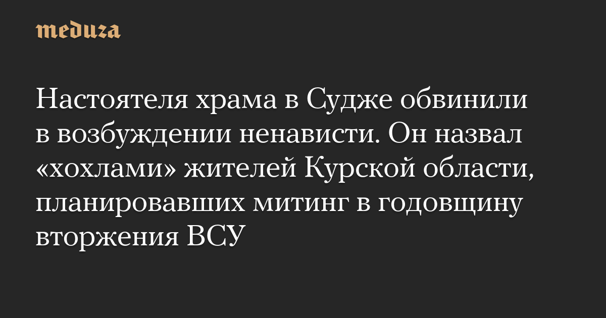 Настоятеля храма в Судже обвинили в возбуждении ненависти. Он назвал «хохлами» жителей Курской области, планировавших митинг в годовщину вторжения ВСУ