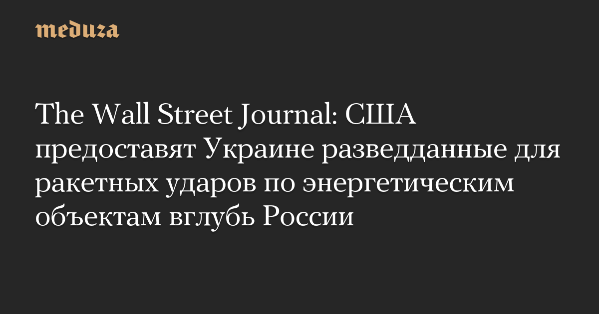 The Wall Street Journal: США предоставят Украине разведданные для ракетных ударов по энергетическим объектам вглубь России