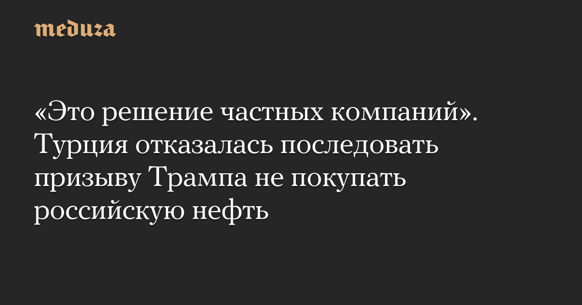 «Это решение частных компаний». Турция отказалась последовать призыву Трампа не покупать российскую нефть