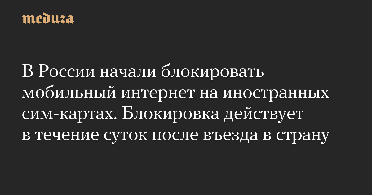 В России начали блокировать мобильный интернет на иностранных сим-картах. Блокировка действует в течение суток после въезда в страну