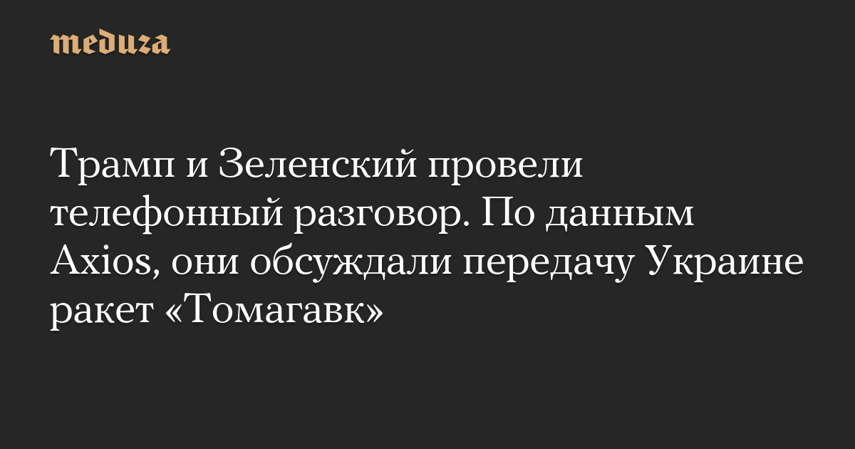 Трамп и Зеленский провели телефонный разговор. По данным Axios, они обсуждали передачу Украине ракет «Томагавк»
