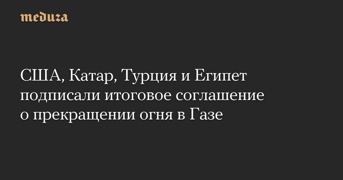 США, Катар, Турция и Египет подписали итоговое соглашение о прекращении огня в Газе