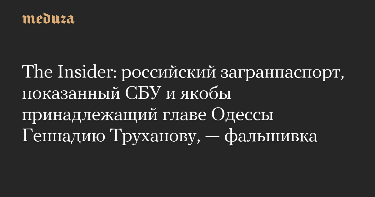 The Insider: российский загранпаспорт, показанный СБУ и якобы принадлежащий главе Одессы Геннадию Труханову, — фальшивка