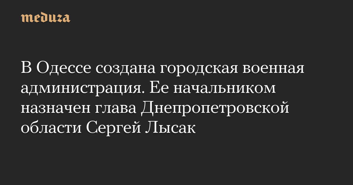 Владимир Зеленский подписал документ о создании городской военной администрации Одесского района Одесской области. Ее возглавит Сергей Лысак, который до этого был главой администрации Днепропетровской области.