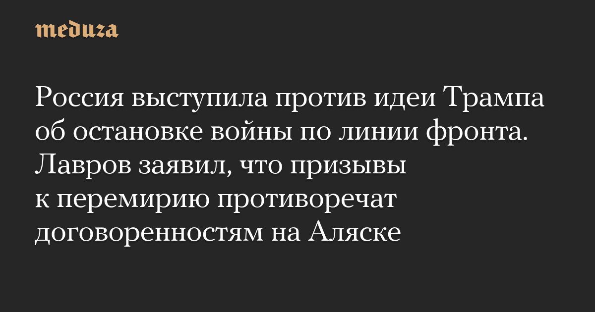 Россия выступила против идеи Трампа об остановке войны по линии фронта. Лавров заявил, что призывы к перемирию противоречат договоренностям на Аляске