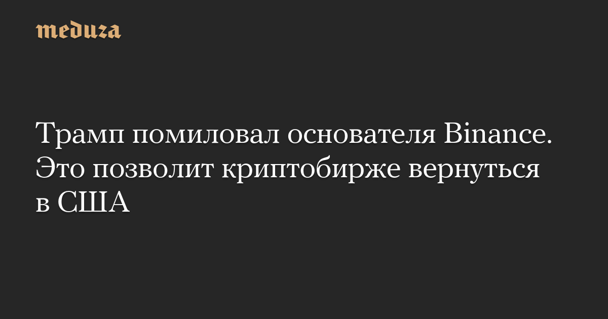 Трамп помиловал основателя Binance. Это позволит криптобирже вернуться в США