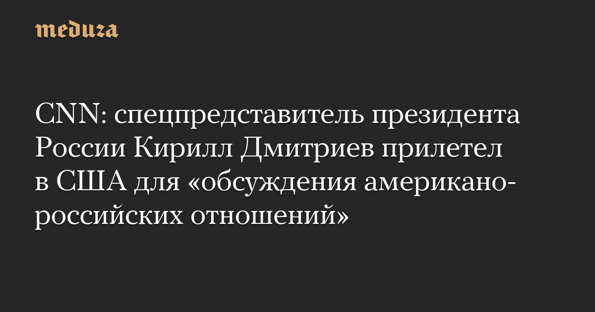 CNN: cпецпредставитель президента России Кирилл Дмитриев прилетел в США для «обсуждения американо-российских отношений»