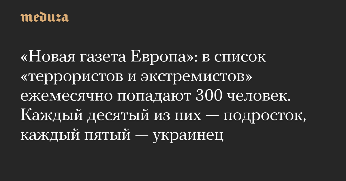 «Новая газета Европа»: в список «террористов и экстремистов» ежемесячно попадают 300 человек. Каждый десятый из них — подросток, каждый пятый — украинец