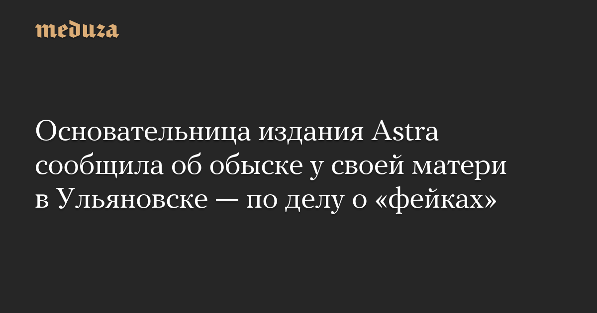 Основательница издания Astra сообщила об обыске у своей матери в Ульяновске — по делу о «фейках»
