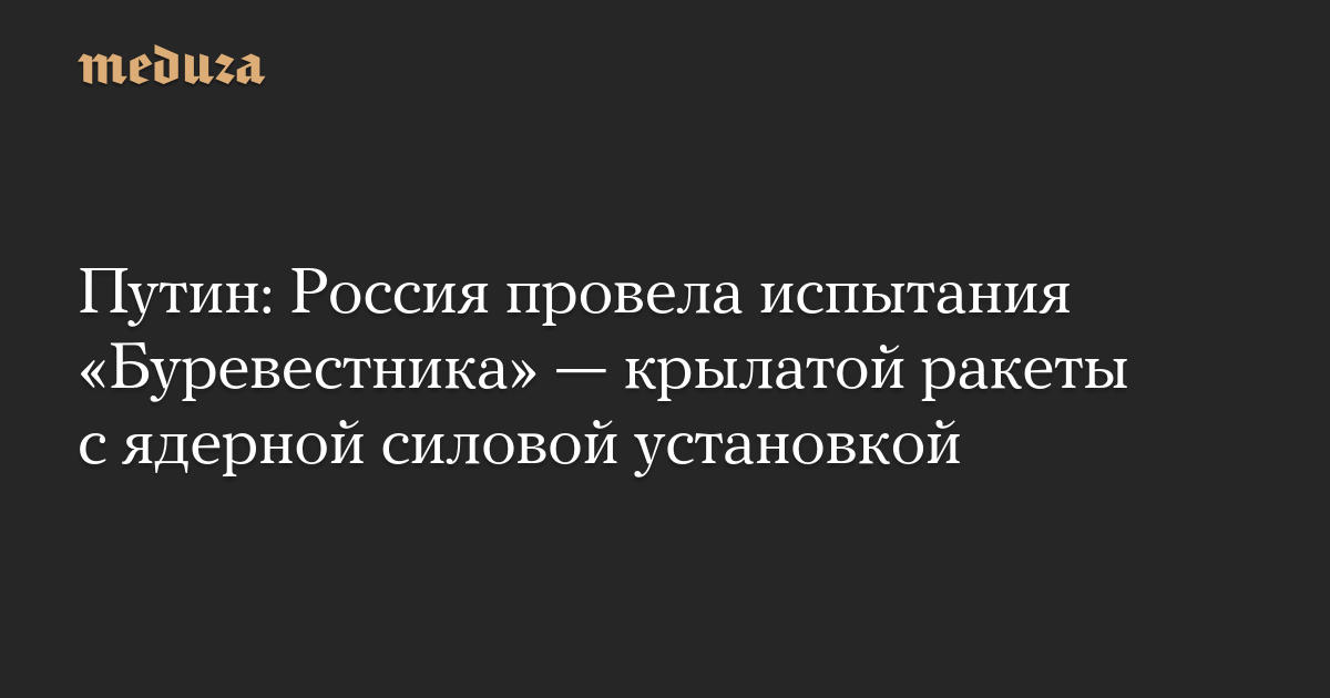 Путин: Россия провела испытания «Буревестника» — крылатой ракеты с ядерной силовой установкой