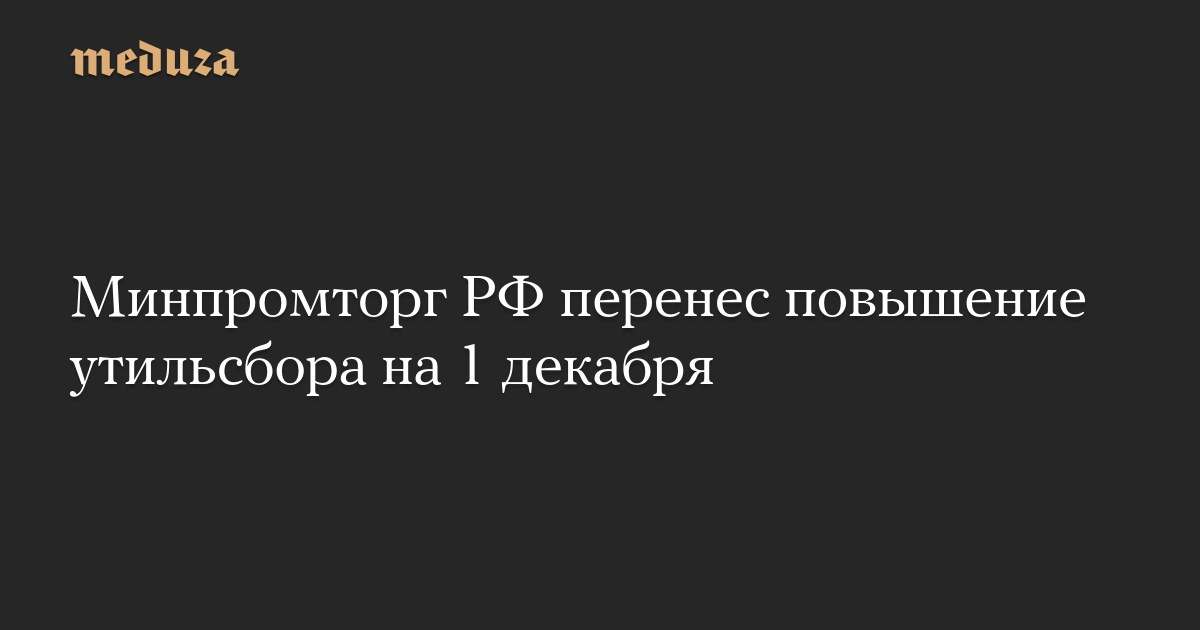 Минпромторг РФ перенес повышение утильсбора на 1 декабря