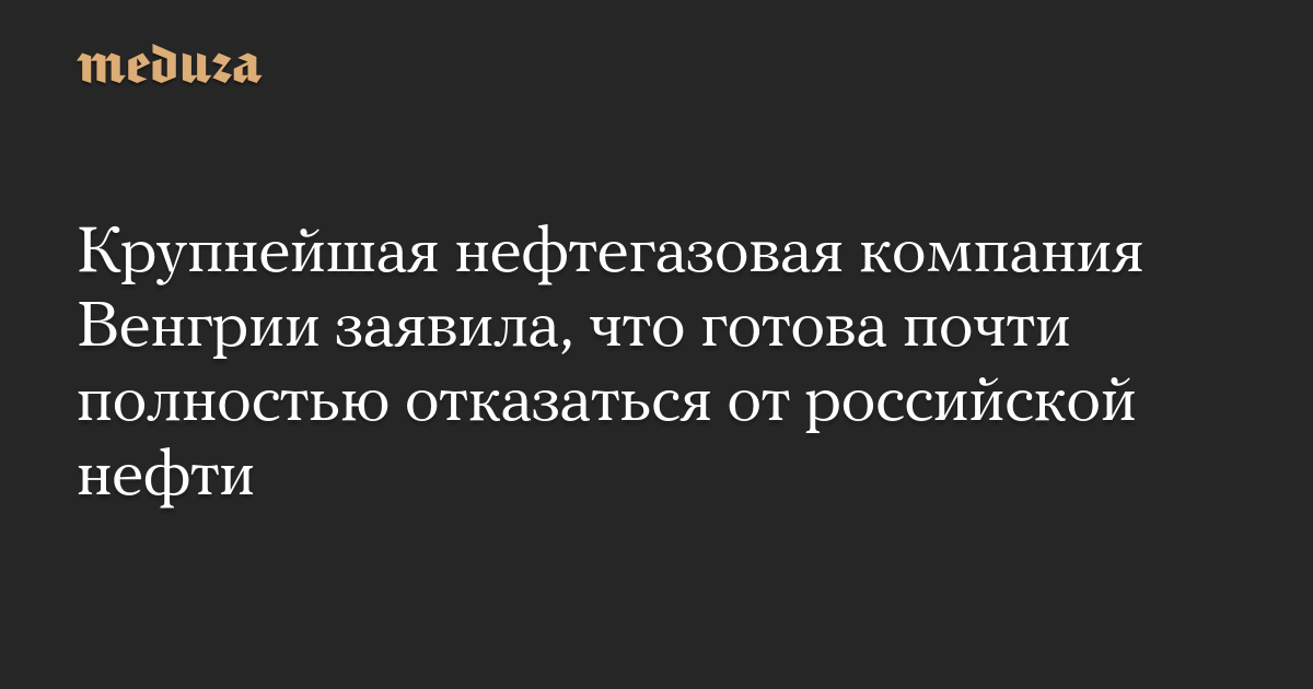 Крупнейшая нефтегазовая компания Венгрии заявила, что готова почти полностью отказаться от российской нефти