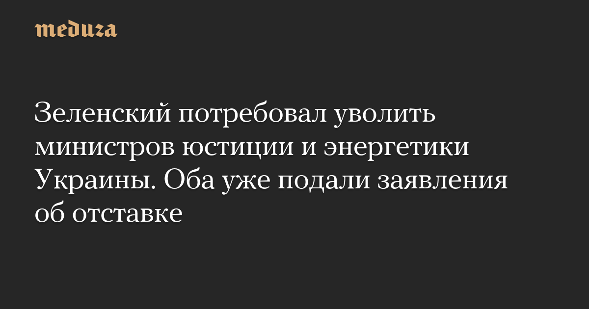 Зеленский потребовал уволить министров юстиции и энергетики Украины. Оба уже подали заявления об отставке