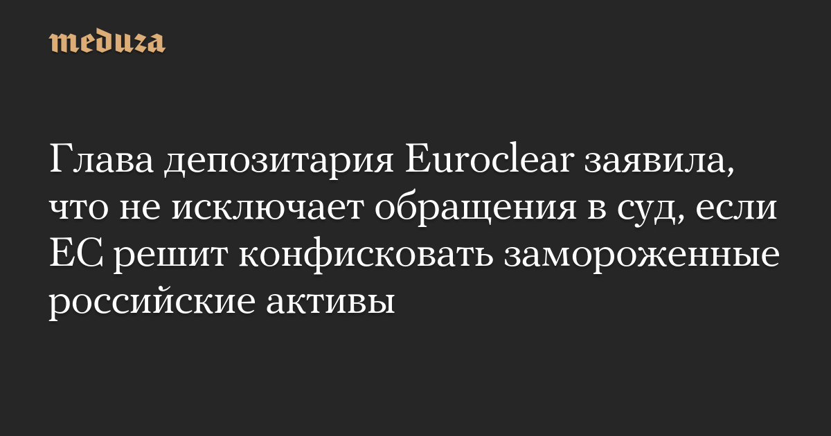 Глава депозитария Euroclear заявила, что не исключает обращения в суд, если ЕС решит конфисковать замороженные российские активы