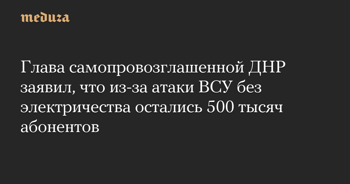 Глава самопровозглашенной ДНР заявил, что из-за атаки ВСУ без электричества остались 500 тысяч абонентов