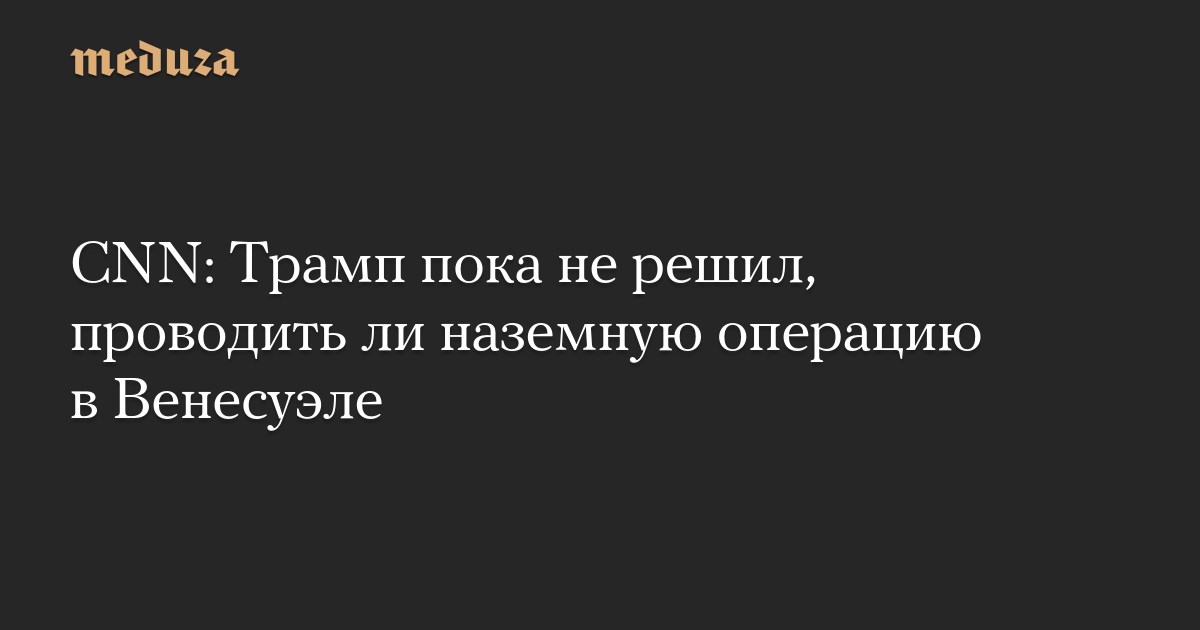 Президент США Дональд Трамп пока не принял решение о том, проводить ли наземную операцию в Венесуэле, сообщили CNN два высокопоставленных источника, намекнув, что путь к дипломатическому решению пока открыт.