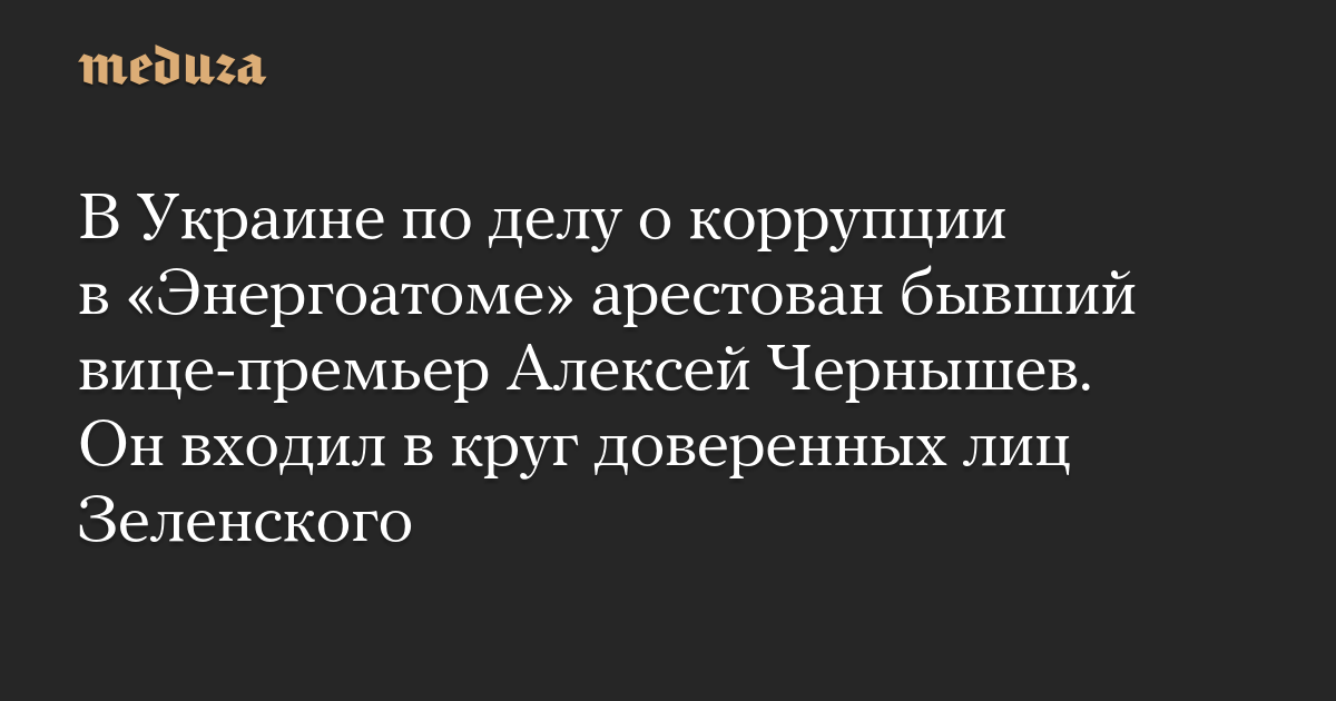 В Украине по делу о коррупции в «Энергоатоме» арестован бывший вице-премьер Алексей Чернышев. Он входил в круг доверенных лиц Зеленского