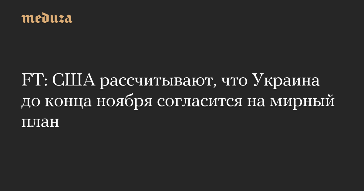 FT: США рассчитывают, что Украина до конца ноября согласится на мирный план