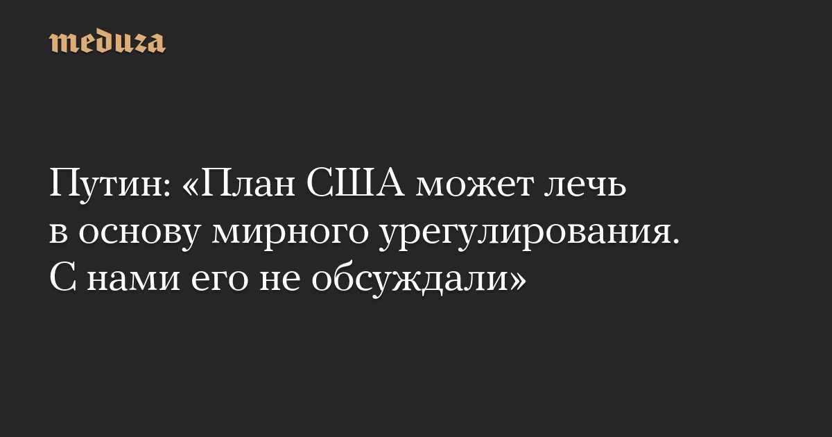 Путин отметил, что Россия получила текст мирного плана США, но «предметно» его с российской стороной не обсуждали. По его мнению, США не обсуждали план с РФ, поскольку Украина пока не дала своего согласия на эти предложения.