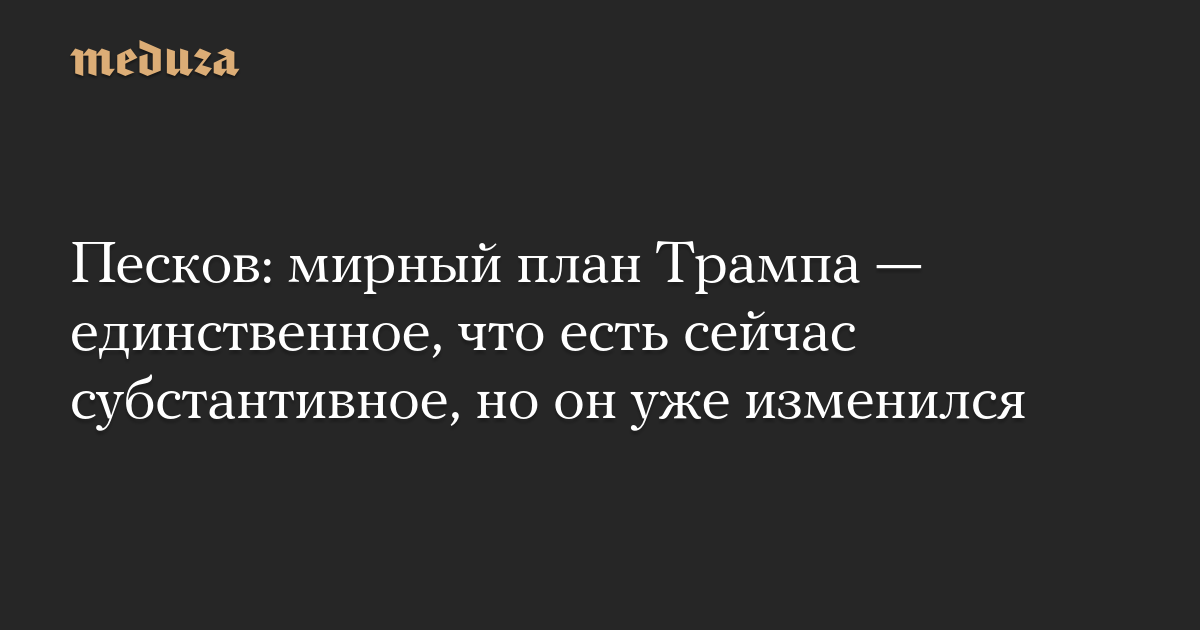 Песков: мирный план Трампа — единственное, что есть сейчас субстантивное, но он уже изменился