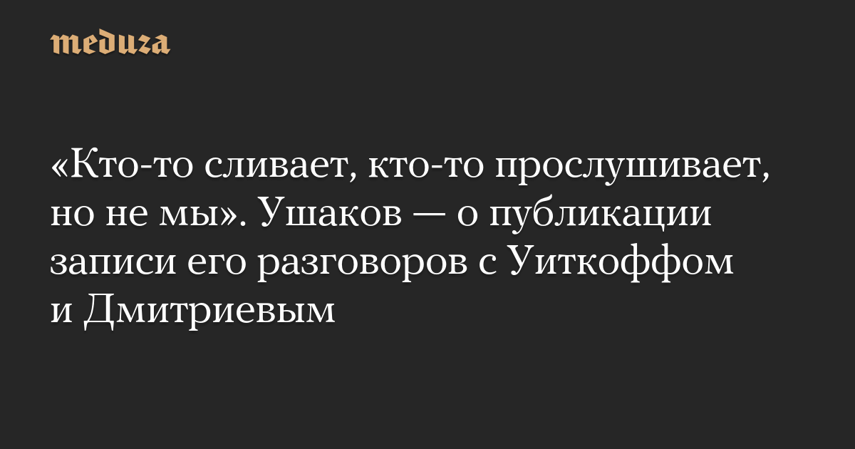 Ушаков не ответил прямо на вопрос, фейк его разговор с Уиткоффом или он действительно был. Он отметил, что достаточно часто разговаривает со спецпосланником Трампа, но содержание этих разговоров не комментирует. По мнению Ушакова, подобные утечки публикуют, «чтобы помешать». «Вряд ли они это делают, чтобы улучшить отношения», — добавил помощник российского президента.