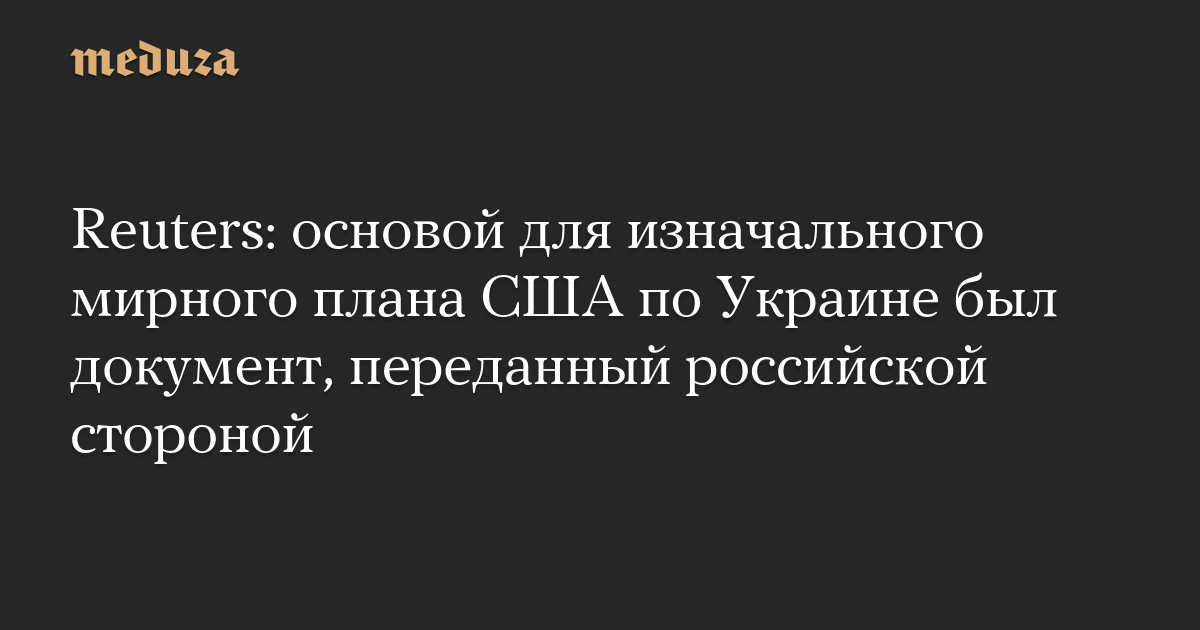 План прекращения войны, состоящий из 28 пунктов, был подготовлен на основе документа, который российская сторона передала администрации Дональда Трампа, пишет агентство Reuters со ссылкой на три источника.