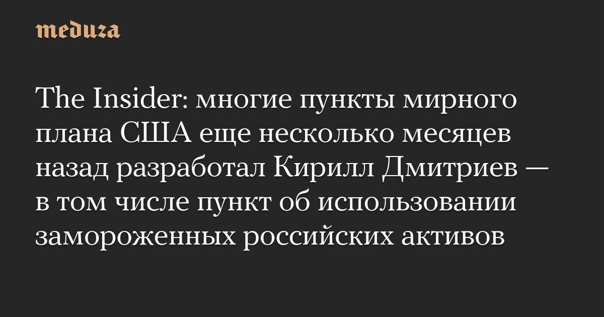 The Insider: многие пункты мирного плана США еще несколько месяцев назад разработал Кирилл Дмитриев — в том числе пункт об использовании замороженных российских активов