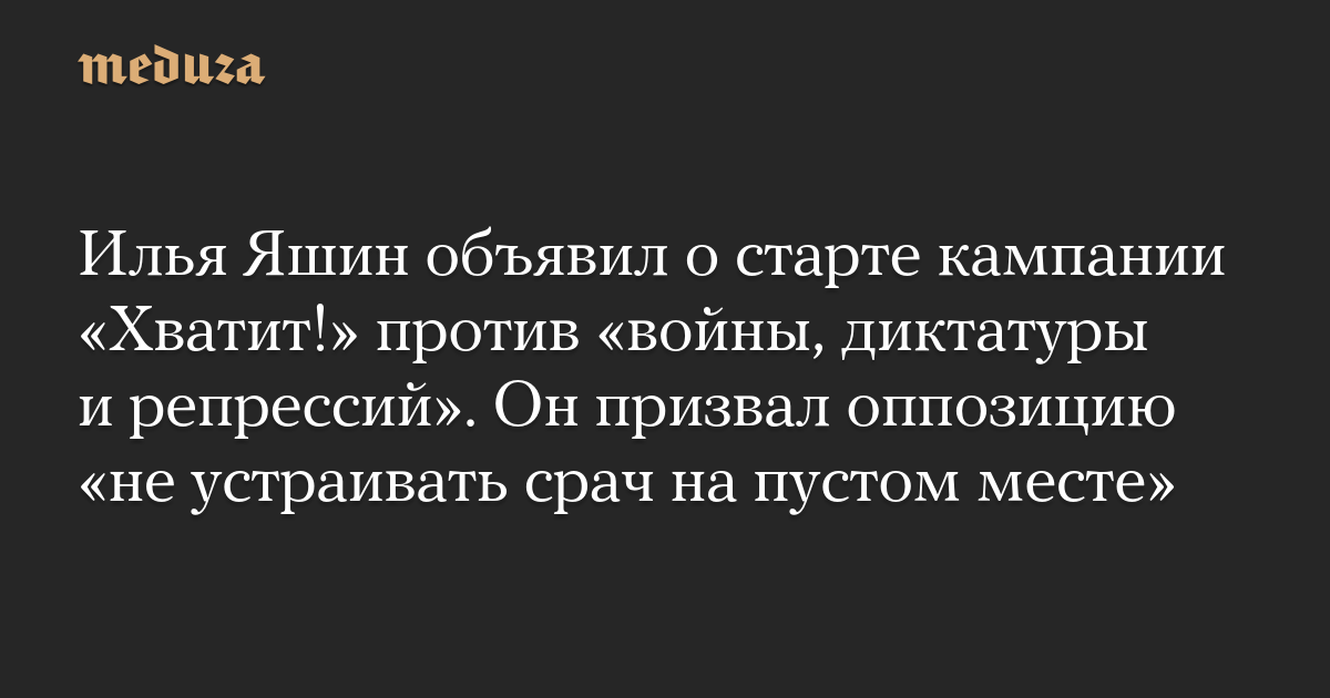 Илья Яшин объявил о старте кампании «Хватит!» против «войны, диктатуры и репрессий». Он призвал оппозицию «не устраивать срач на пустом месте»