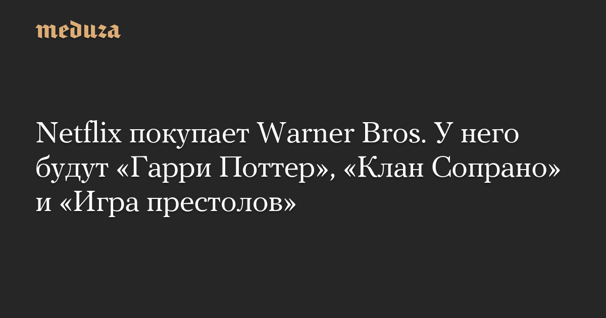 Netflix покупает Warner Bros. У него будут «Гарри Поттер», «Клан Сопрано» и «Игра престолов»