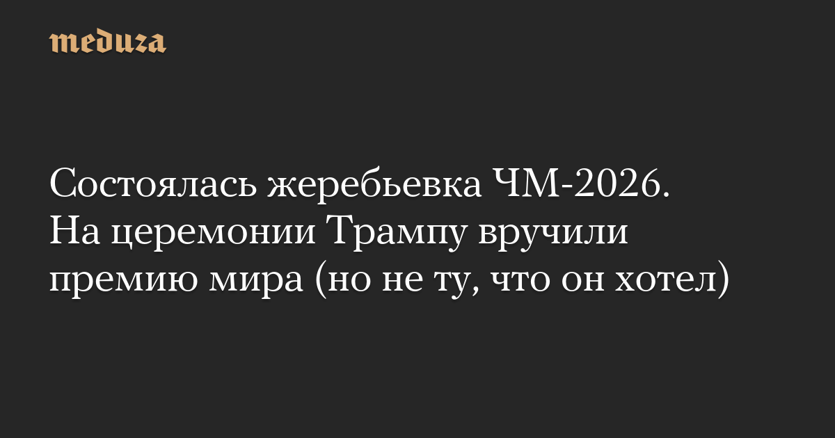 Состоялась жеребьевка ЧМ-2026. На церемонии Трампу вручили премию мира (но не ту, что он хотел)