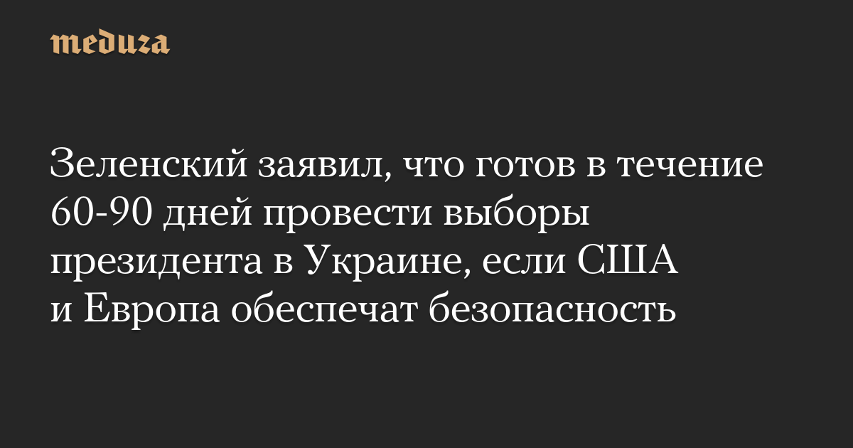 Президент Украины публично попросил США и партнеров в Европе обеспечить условия для проведения голосования. «Я готов к выборам. Более того — прошу США, можно вместе с европейскими коллегами, обеспечить безопасность для проведения выборов. Тогда в течение 60-90 дней Украина будет готова к их проведению», — сказал он.