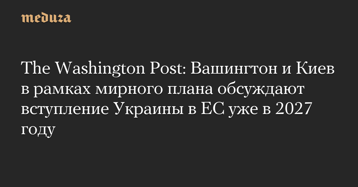 The Washington Post: Вашингтон и Киев в рамках мирного плана обсуждают вступление Украины в ЕС уже в 2027 году