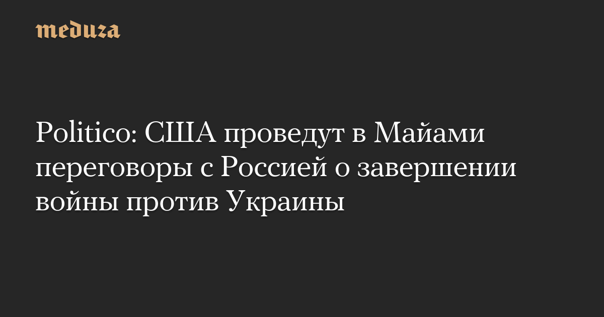 Politico: США проведут в Майами переговоры с Россией о завершении войны против Украины