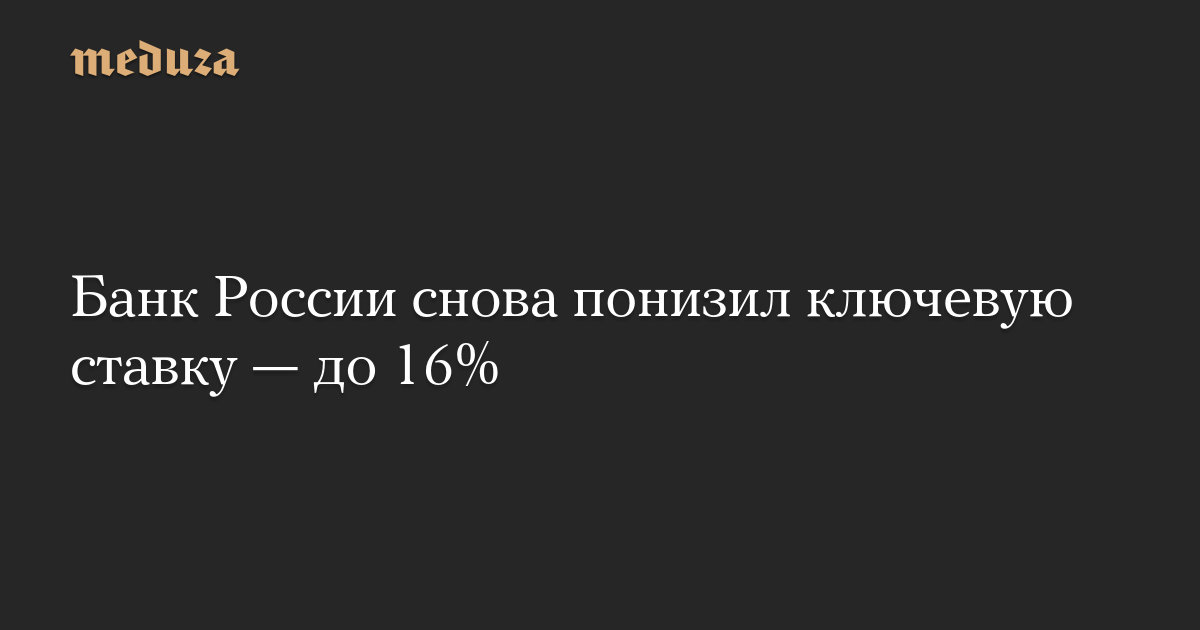 Центробанк снижает ключевую ставку в пятый раз подряд. В июне 2025 года ЦБ понизил ключевую ставку с 21% до 20%, в июле — до 18%, в сентябре — до 17%, в октябре — до 16,5%.
