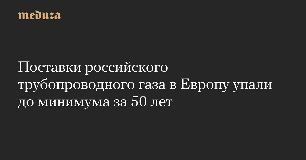 Это минимальное значение с 1970-х годов. Тогда СССР впервые начал экспортировать газ из Сибири в Европу. Так, в 1973 году Советский Союз поставил 6,8 миллиарда кубических метра газа, а в 1975-м — 19,3 миллиарда кубических метра газа.
