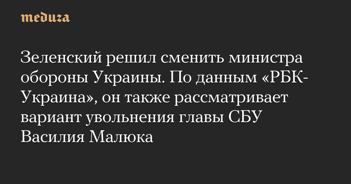 «РБК-Украина» со ссылкой на источники пишет, что Зеленский рассматривает возможность уволить главу Службы безопасности Украины (СБУ) Василия Малюка и назначить его на другую должность. «Попытки снять Василия Малюка с должности действительно есть. Но пока еще ничего не решено, идет обсуждение», — заявил один из собеседников издания.