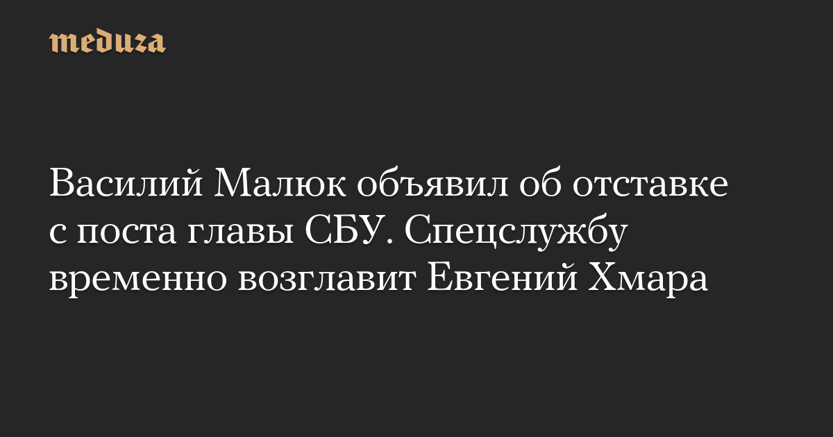 Глава Службы безопасности Украины Василий Малюк объявил, что покидает свой пост.